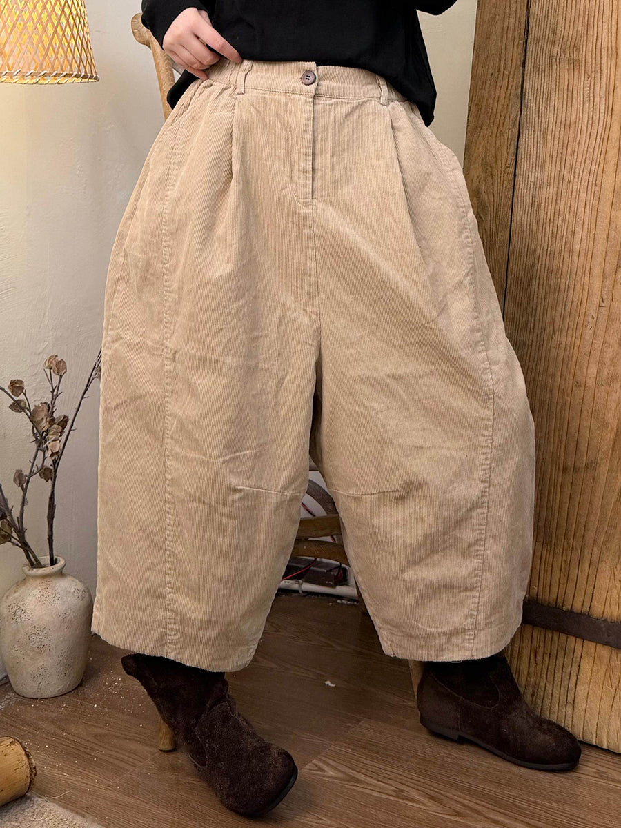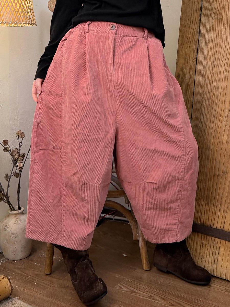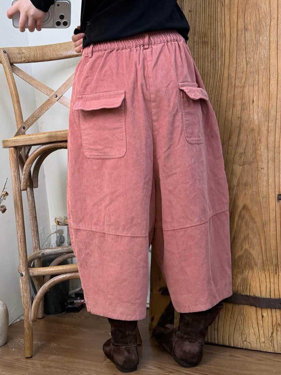 מכנסי הרמון קורדרוי בצבע טהור בצבע רטרו לחורף לנשים