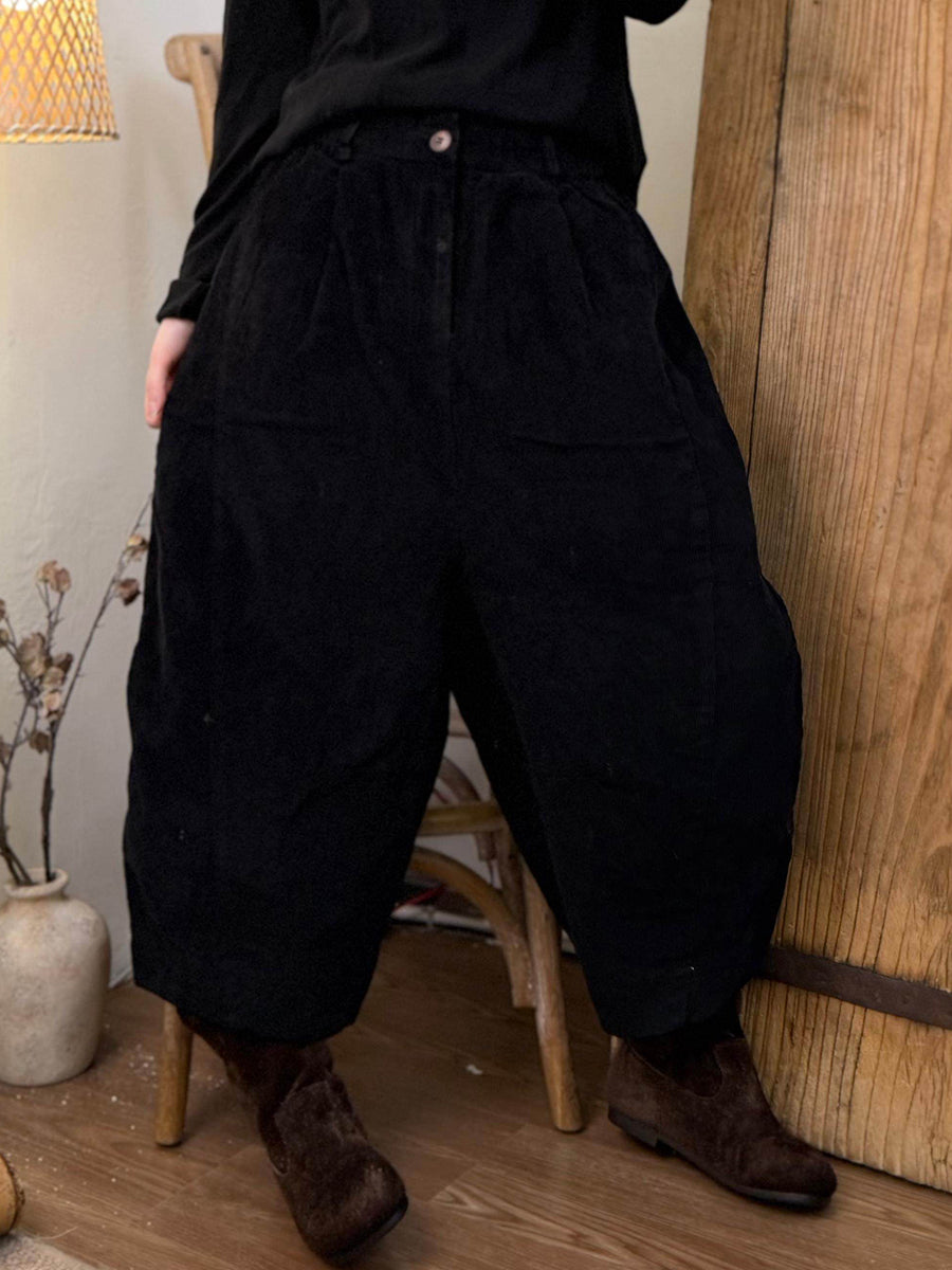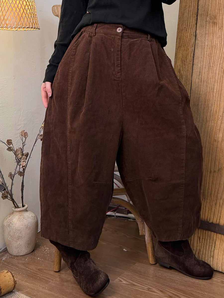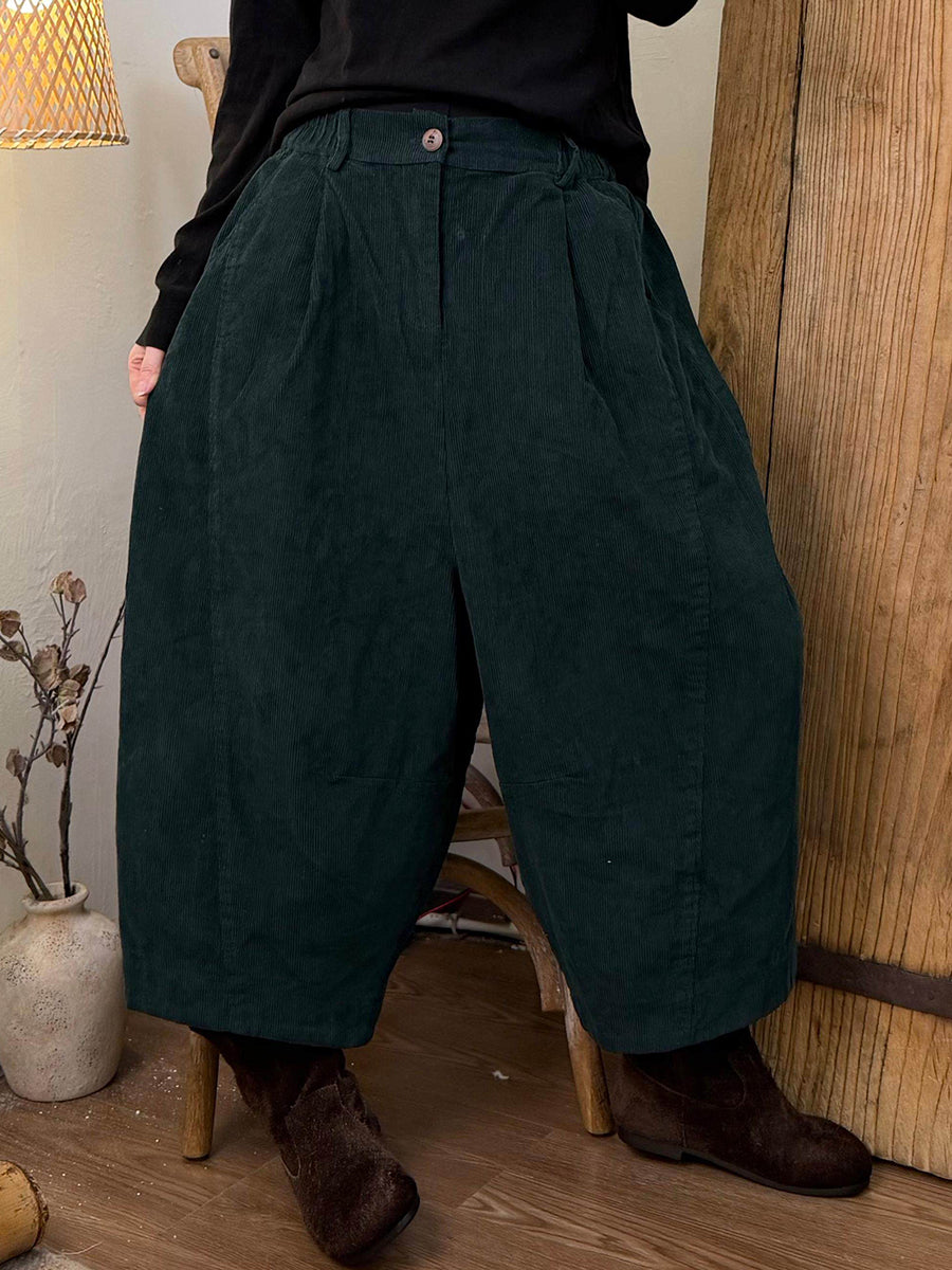 מכנסי הרמון קורדרוי בצבע טהור בצבע רטרו לחורף לנשים