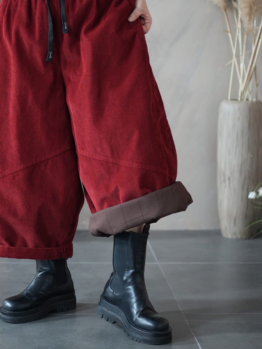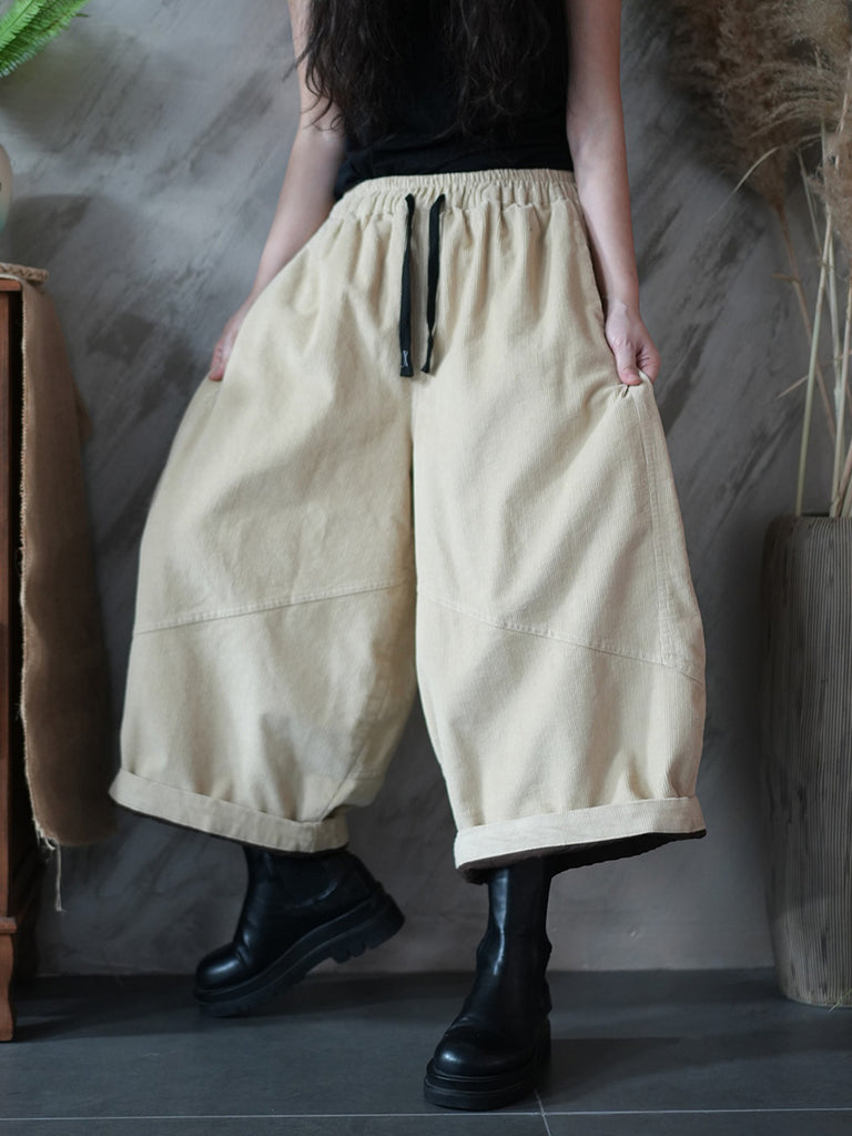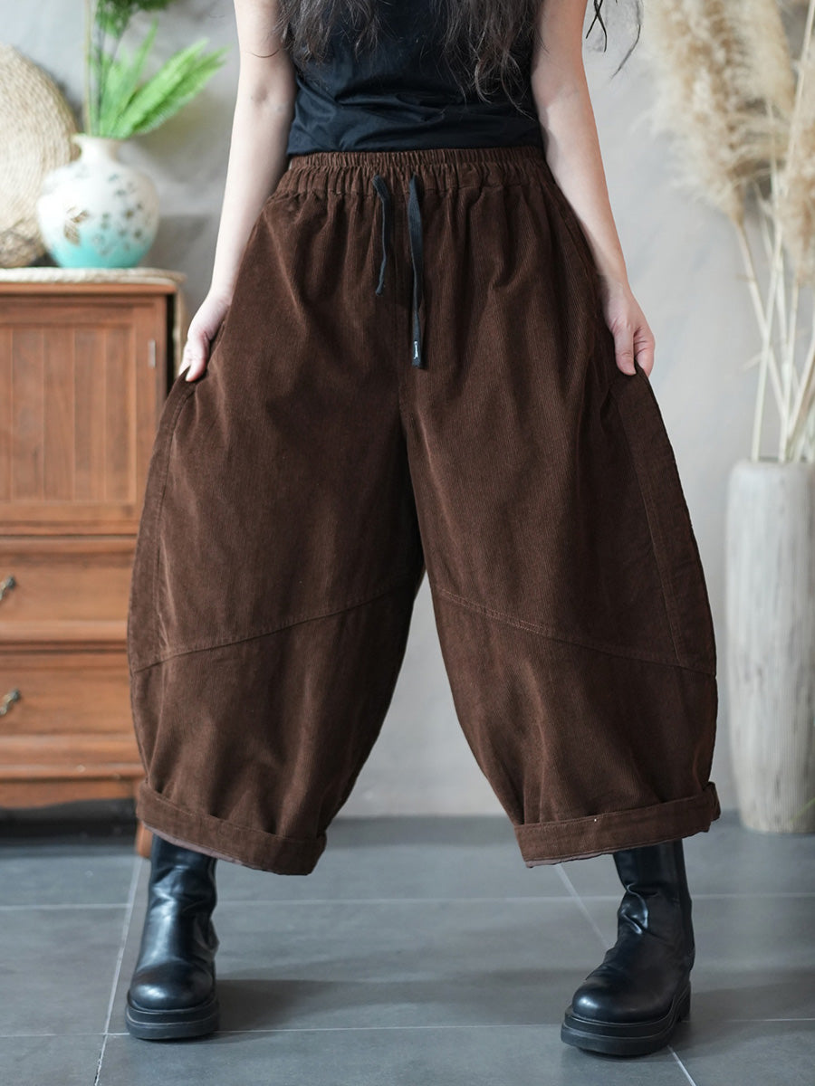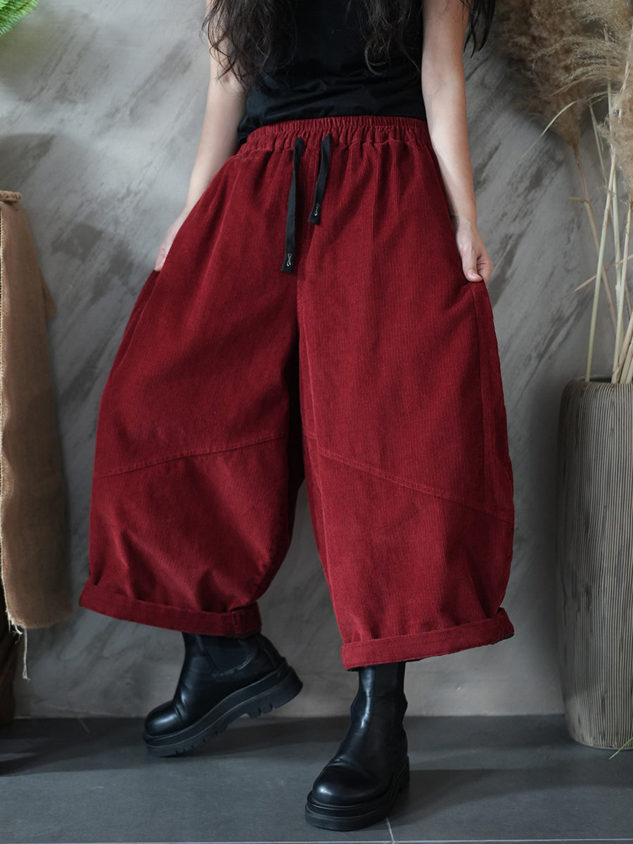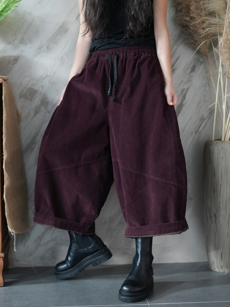 מכנסי קורדרוי רחבים בצבע טהור בצבע חורף רטרו לנשים