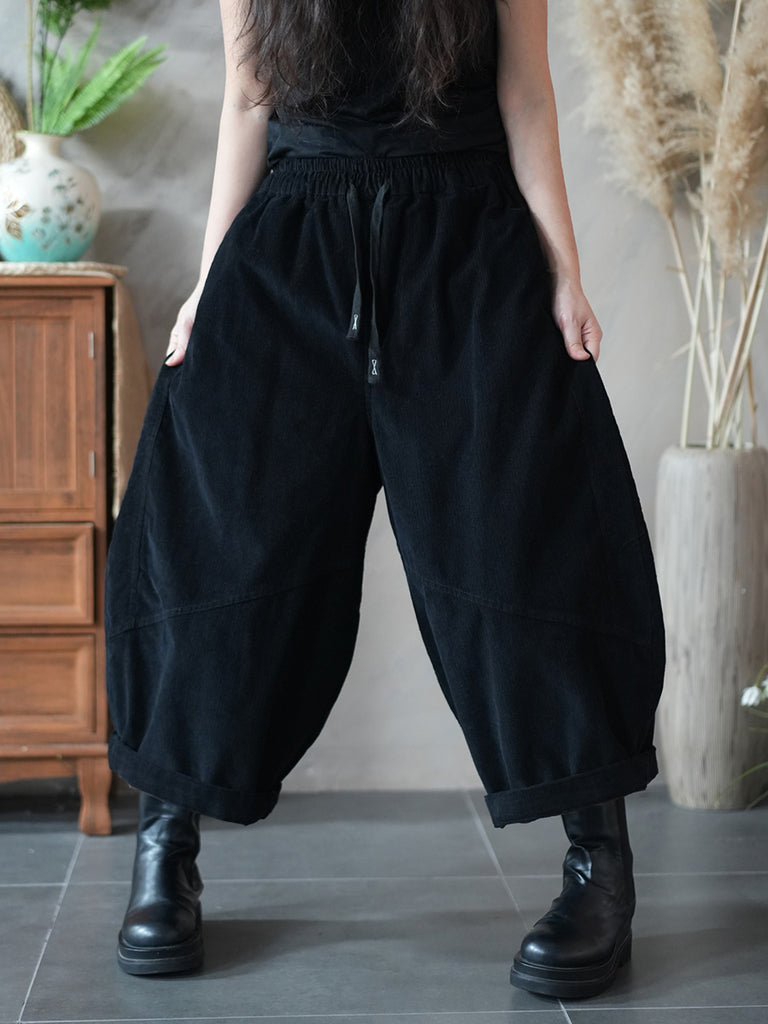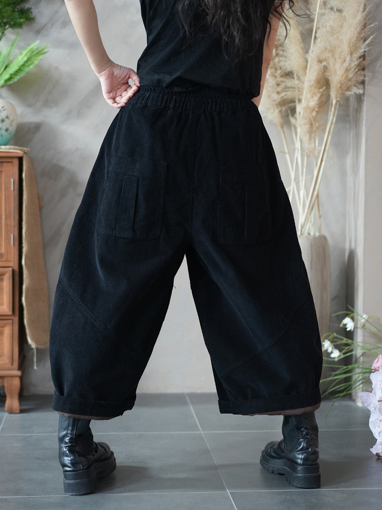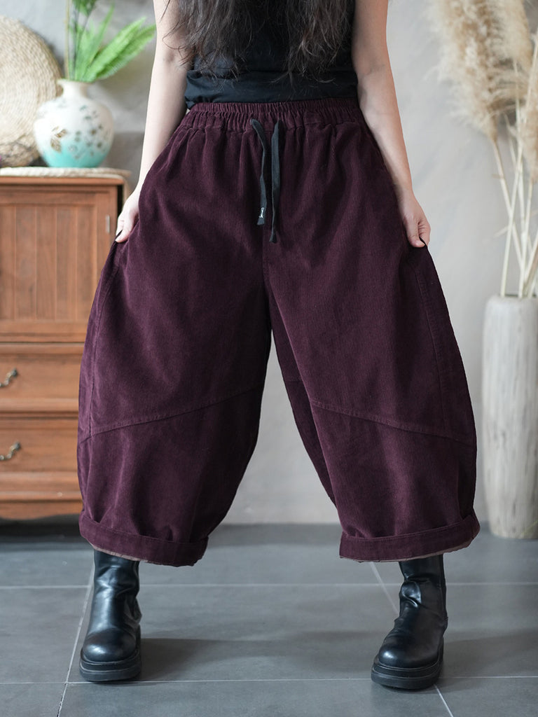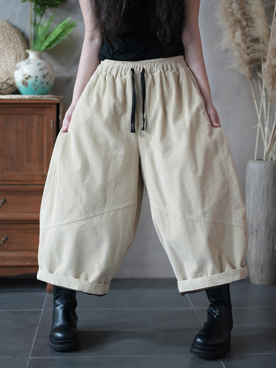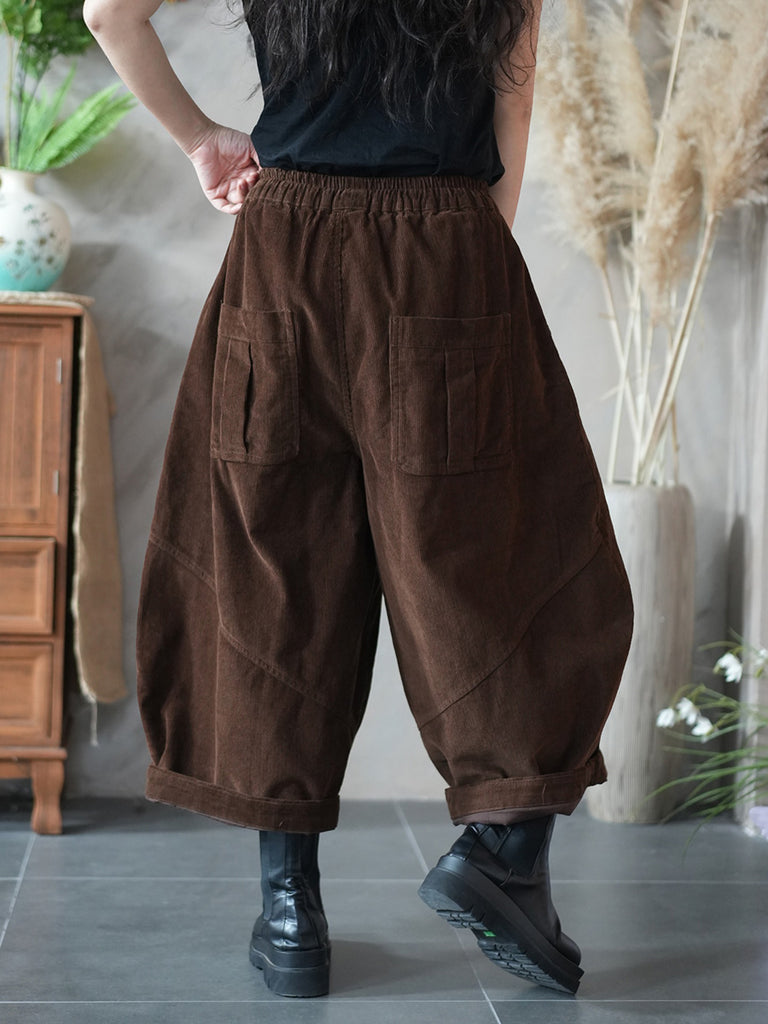 מכנסי קורדרוי רחבים בצבע טהור בצבע חורף רטרו לנשים