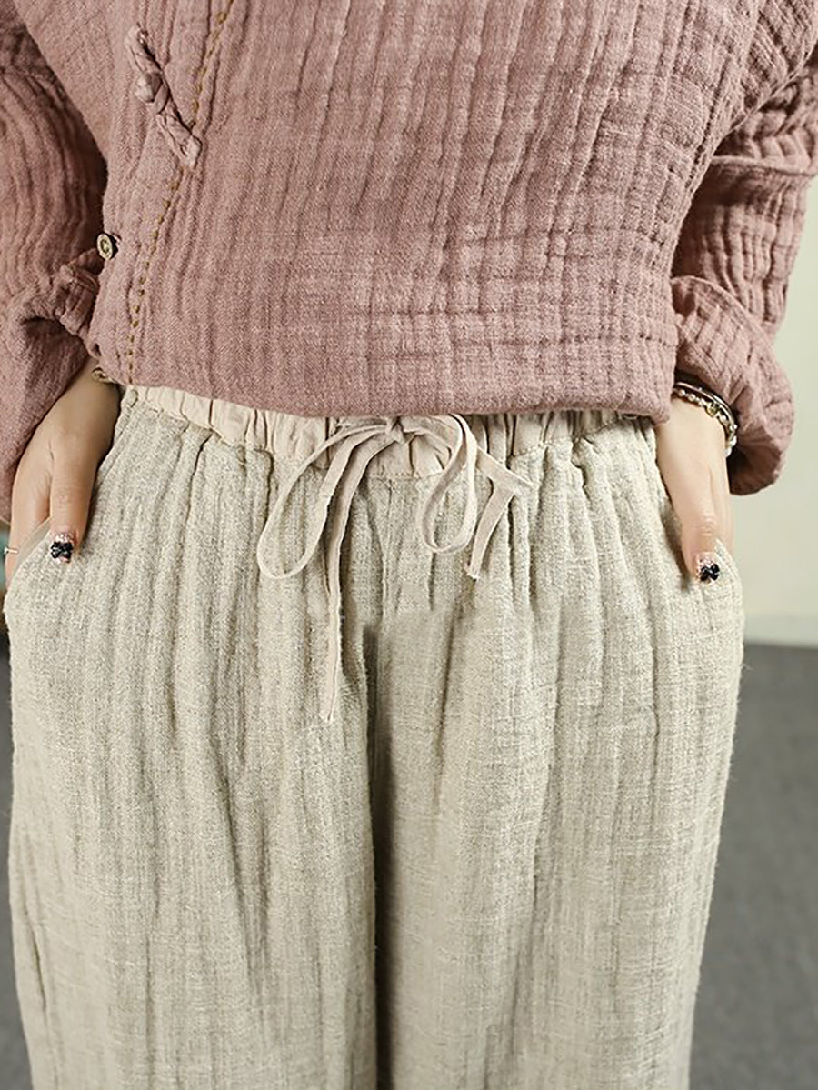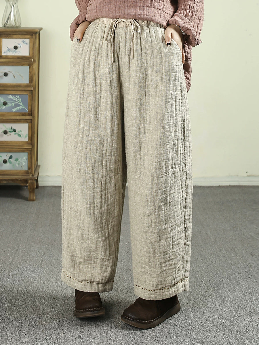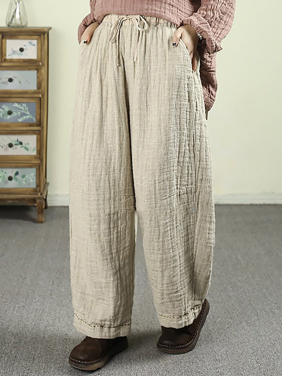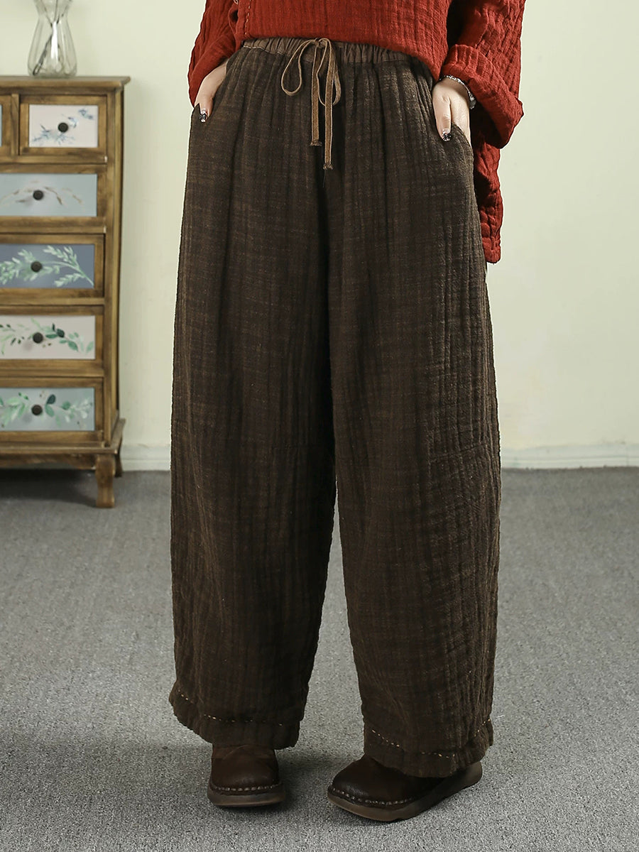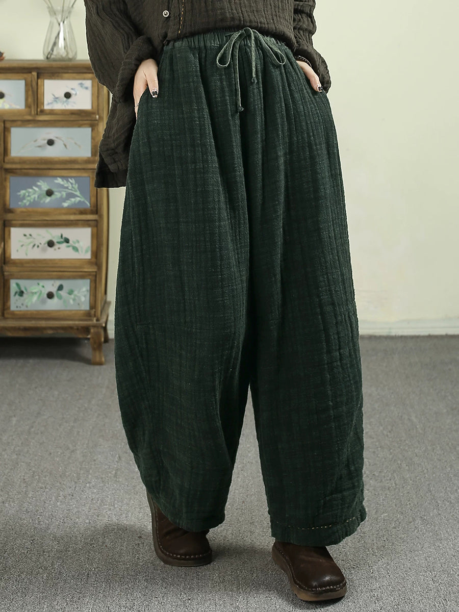 מכנסי הרמון מרופדים בצבע טהור בסגנון רטרו לחורף לנשים