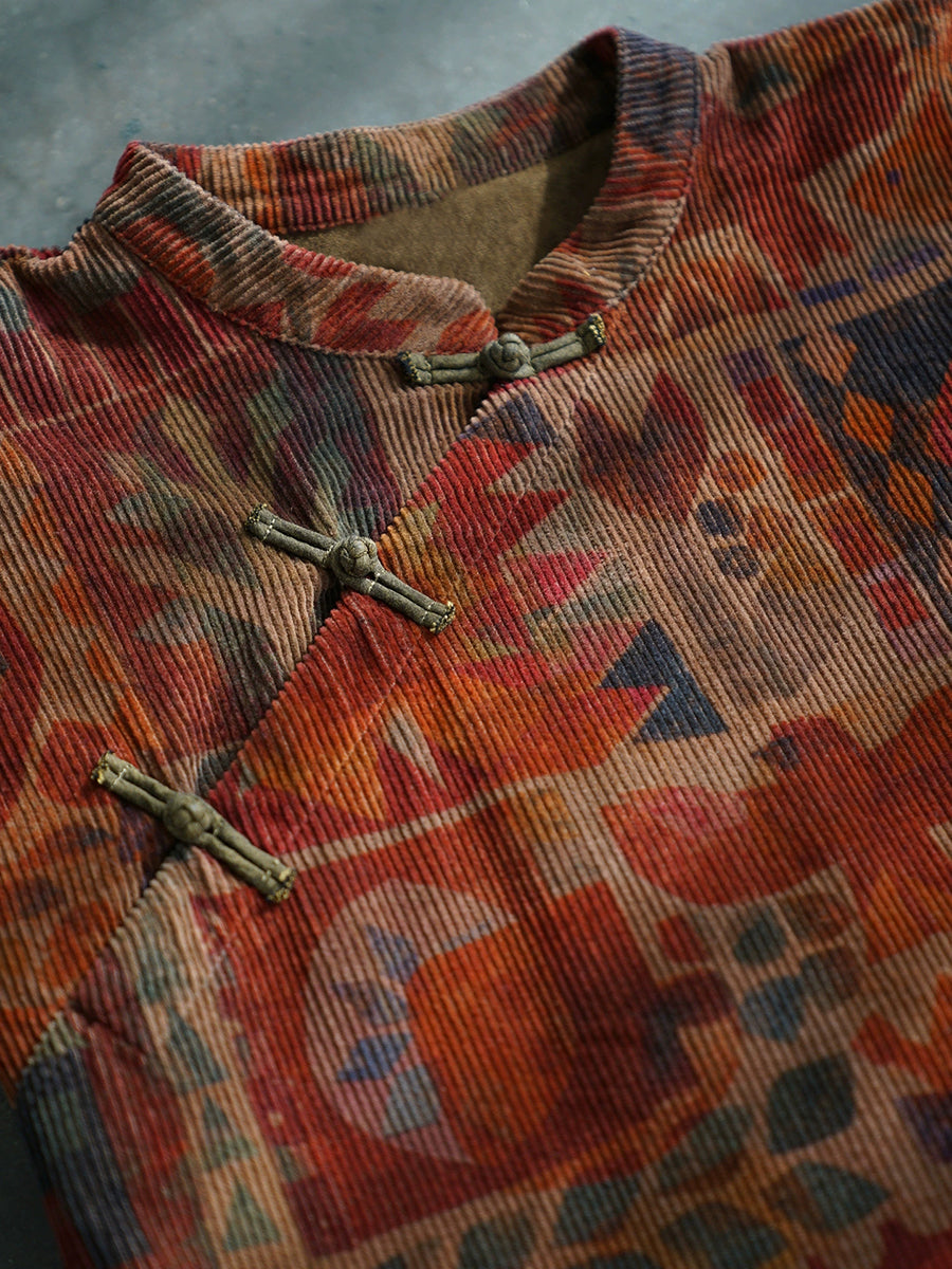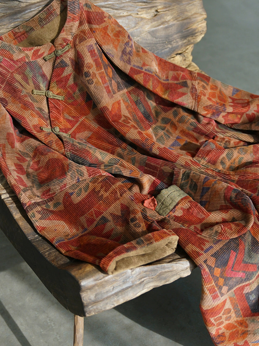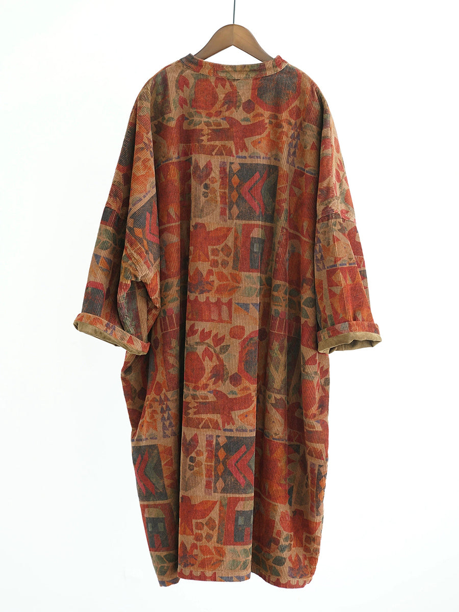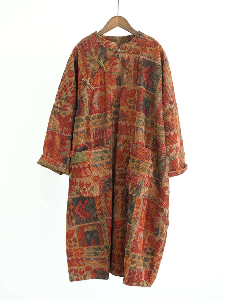 שמלת חלוק 100% כותנה עם צווארון עומד גיאומטרי וינטג' לנשים בחורף