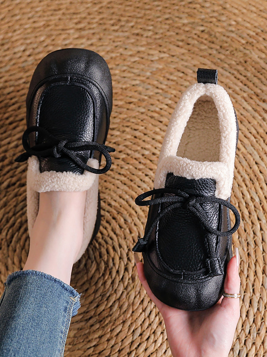 נעלי חורף וינטג' מעור לנשים עם בטנת פליז