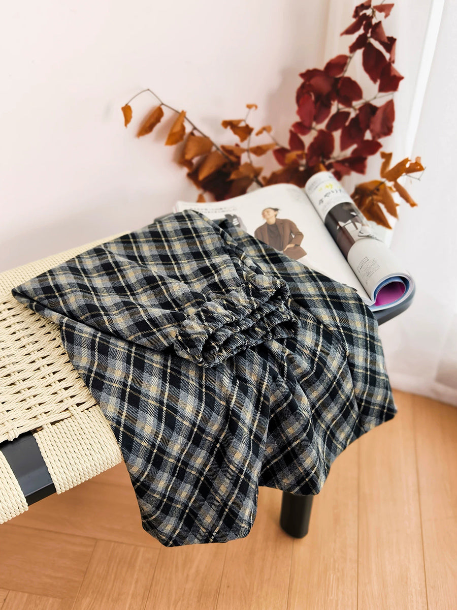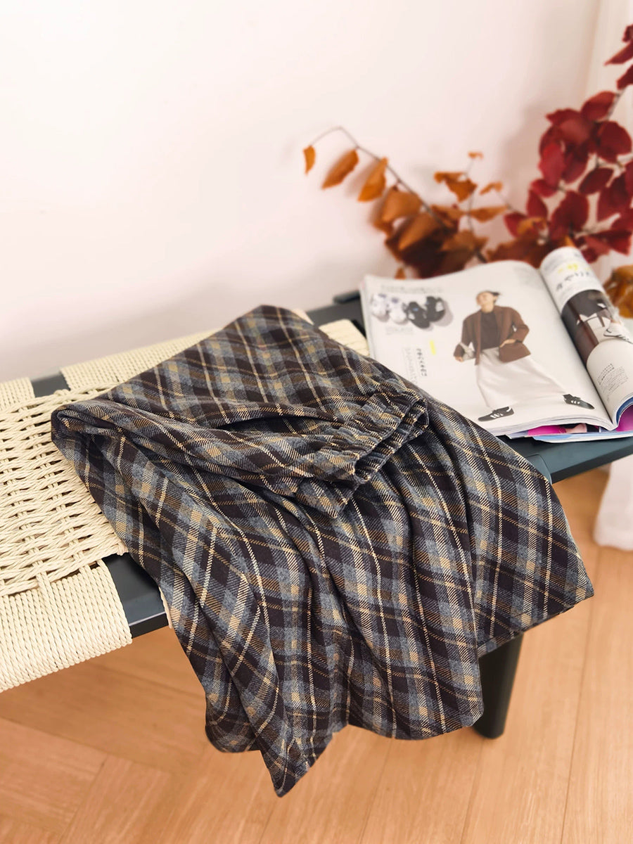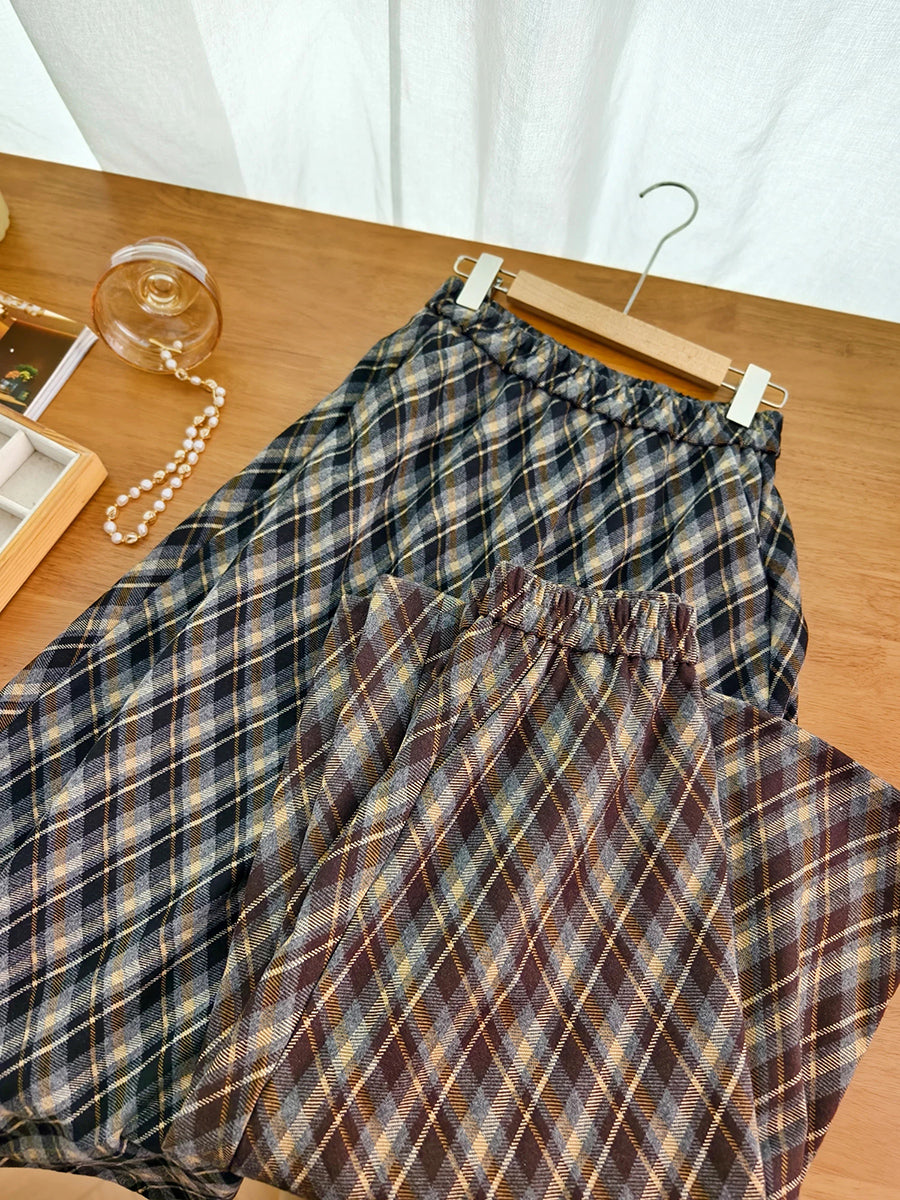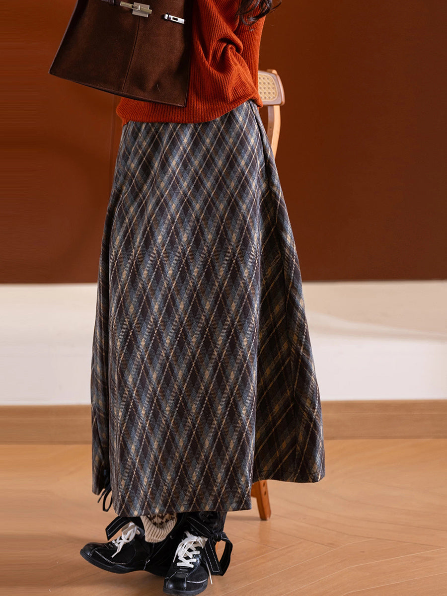 חצאית עבה מעוינים וינטג' חורפית לנשים
