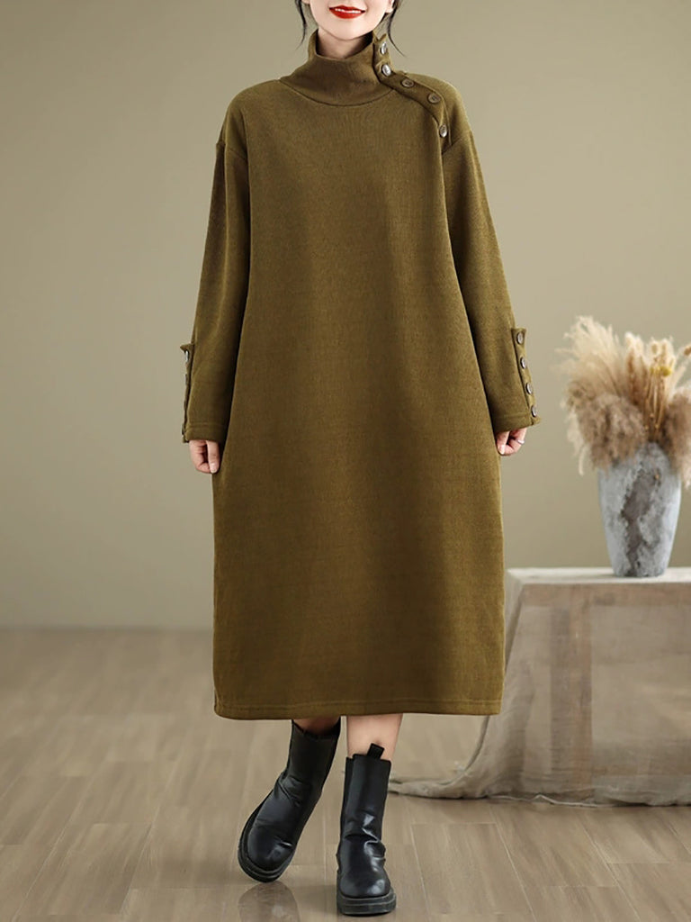 שמלת חורף לנשים עם צווארון עומד בצבע טהור עם בטנת פליז