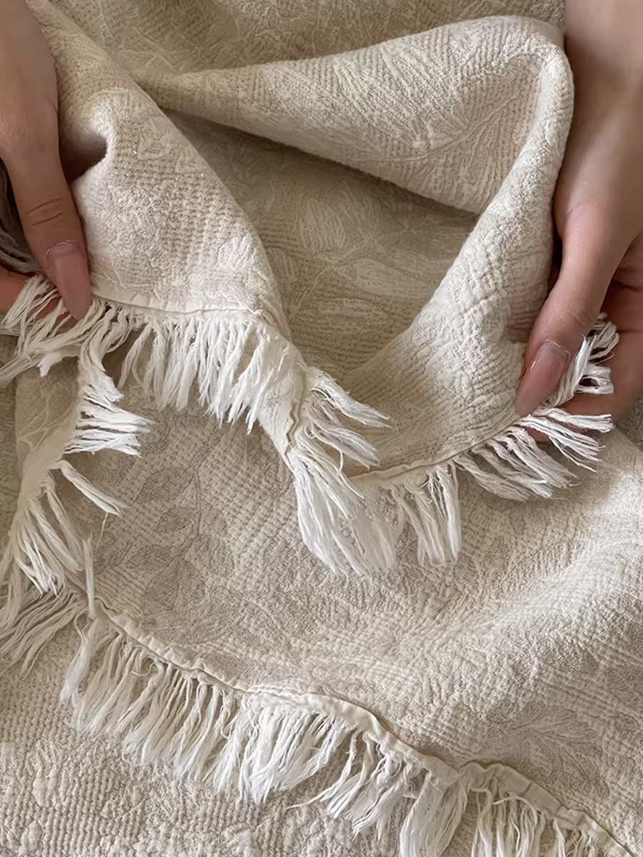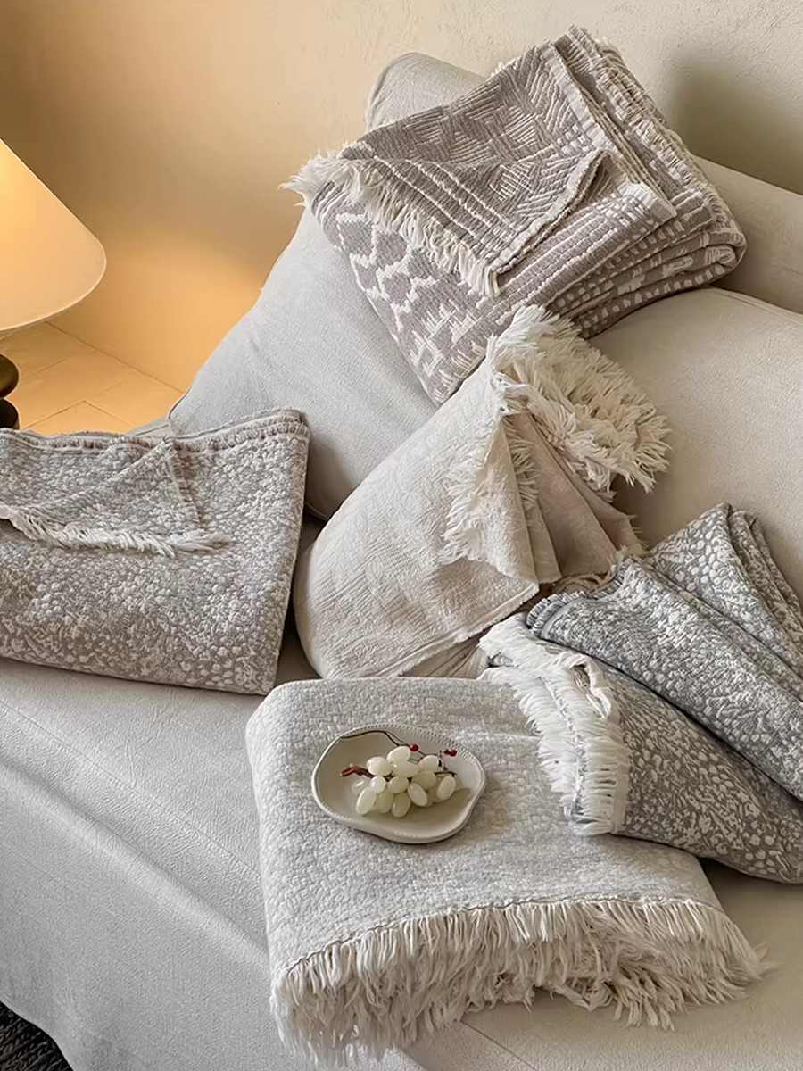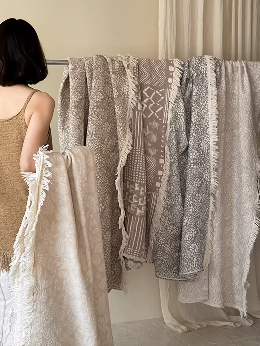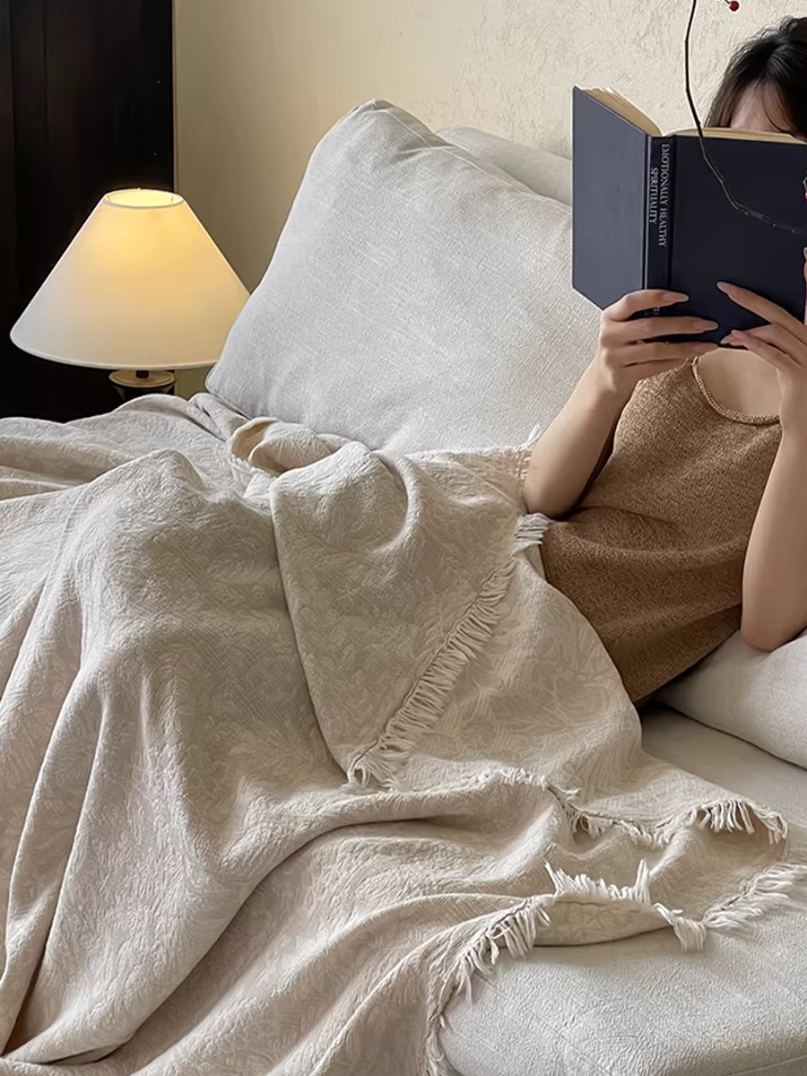 שמיכת גדילים מכותנה ופשתן צבועים בחוט